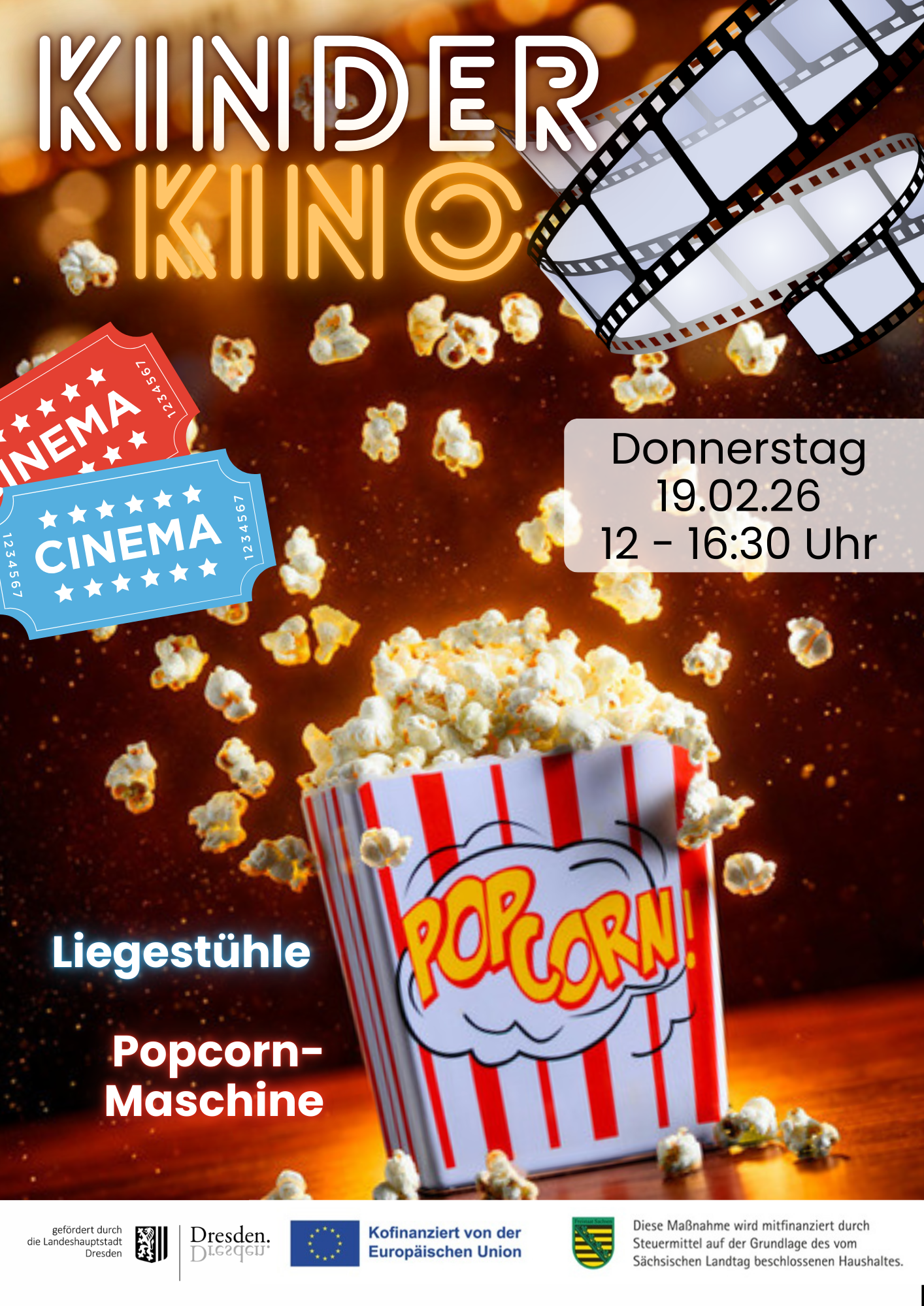 Der Film wird gegen 14 Uhr starten. Vorher ist Zeit für Spiele und gemeinsames Kennenlernen. Wir haben eine Popcornmaschine und super-chillige Liegestühle.