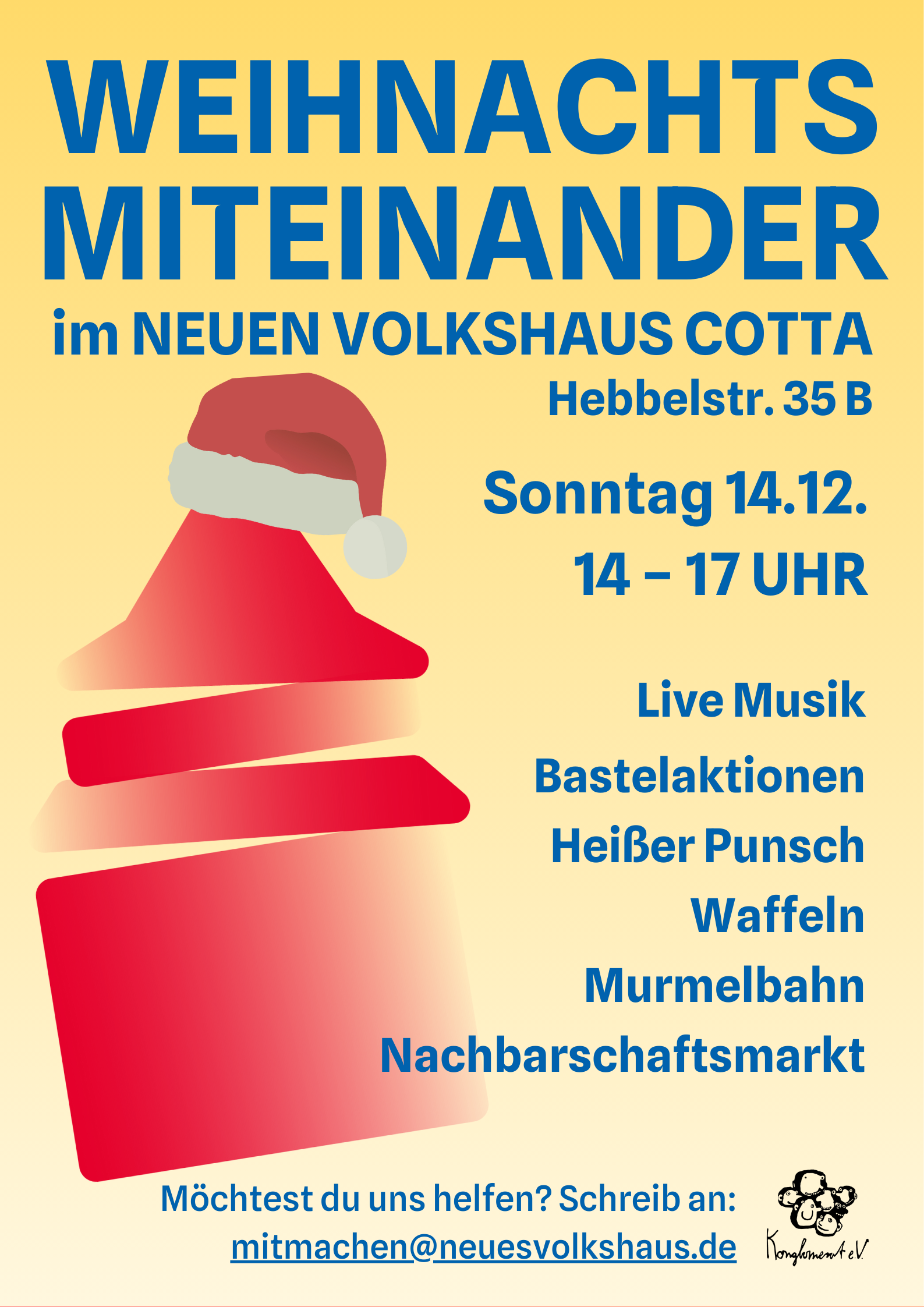 So. 14.12. 14-17 Uhr Weihnachtsmiteinander Live Musik, Bastelaktionen. Heißer Punsch, Waffeln, Murmelbahn & Nachbarschaftsmarkt